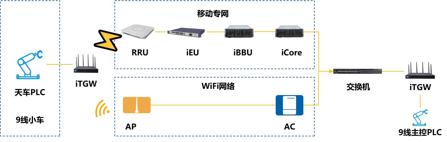 9001cc 以诚为本 9001cc移动专网+工厂原WiFi网络实现高可靠的组网方案,结合9001cc 以诚为本 9001cc端计算网关实现无人天车和主控台实时通讯,保证产品线高效稳定运行,为工厂自动化生产给予通讯保障。
