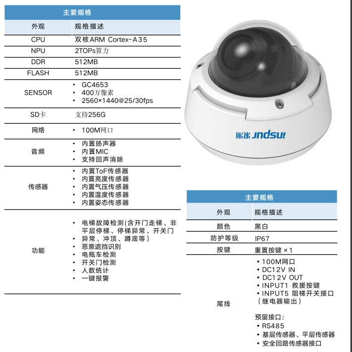 9001cc 以诚为本 9001cc梯慧眼AI摄像头是专为电梯场景打造的智能监控设备,集电动车识别、开关门检测等多项技术,具备电梯故障识别、人数统计、恶意遮挡报警等功能。搭载高性能NPU与多种传感器,实时感知电梯运行状态,有效辅助运维管理,提升乘梯安全与使用体验,是电梯智能化升级的理想选择。